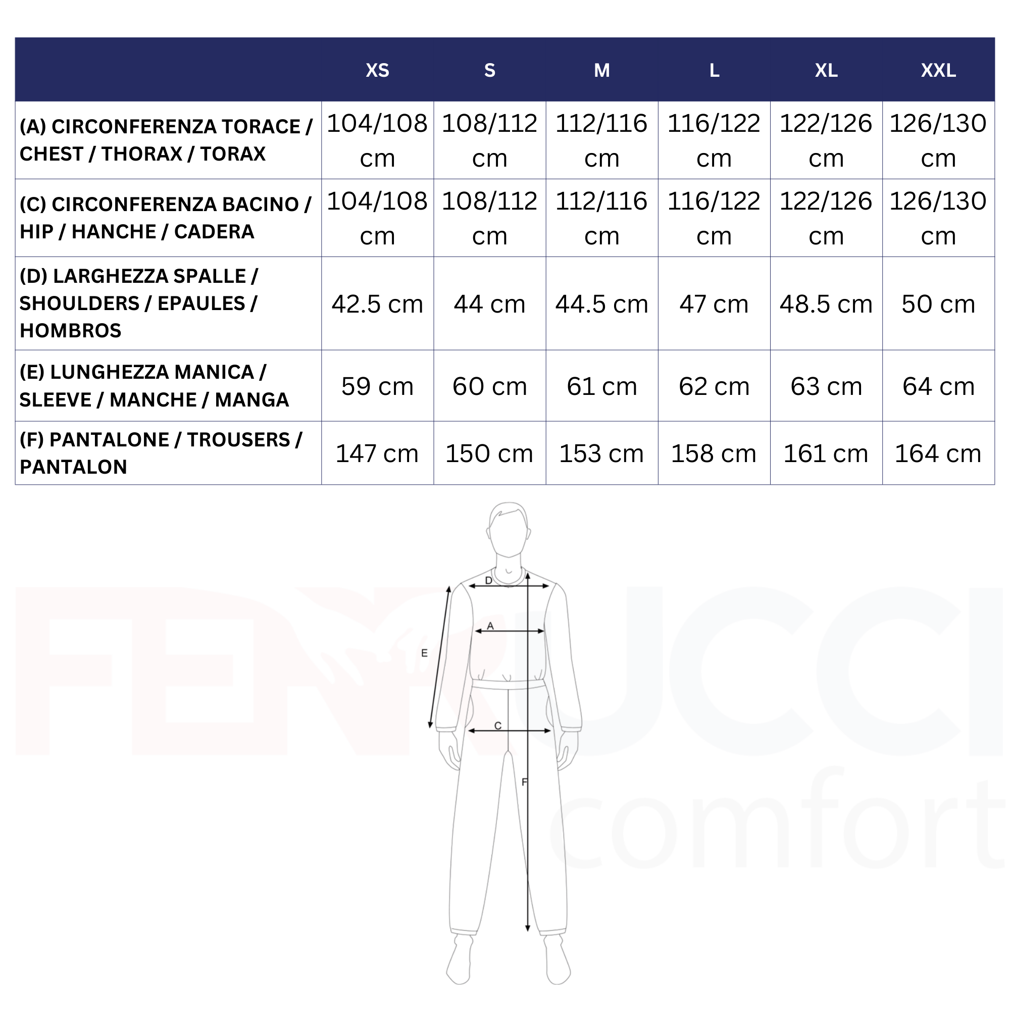 Rispetto alle "taglie canoniche" i nostri prodotti, specialmente i pigiami sanitari e le tute sanitarie, hanno una vestibilità più "larga" per garantire maggiore comodità e comfort.