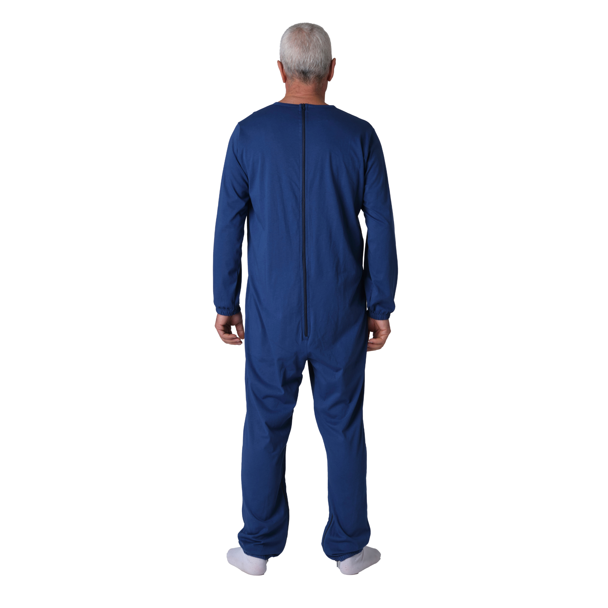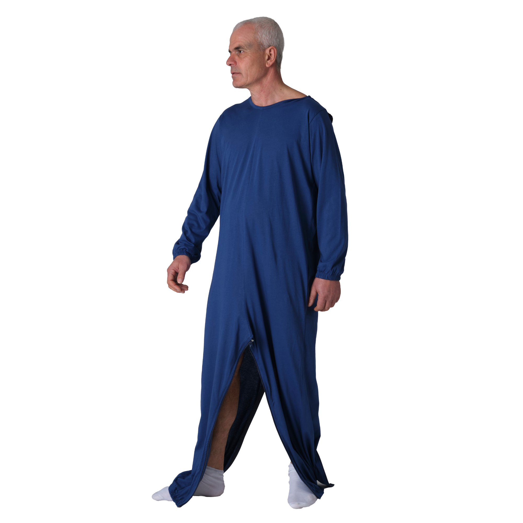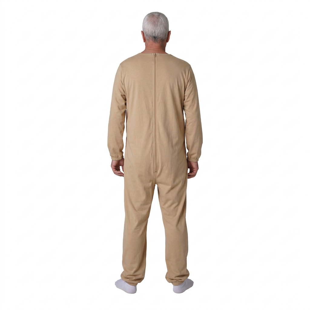 Pigiama sanitario consigliato a chi ha problemi di incontinenza e/o insofferenza agli indumenti, causa Alzheimer, demenza senile o disabilità psichica.