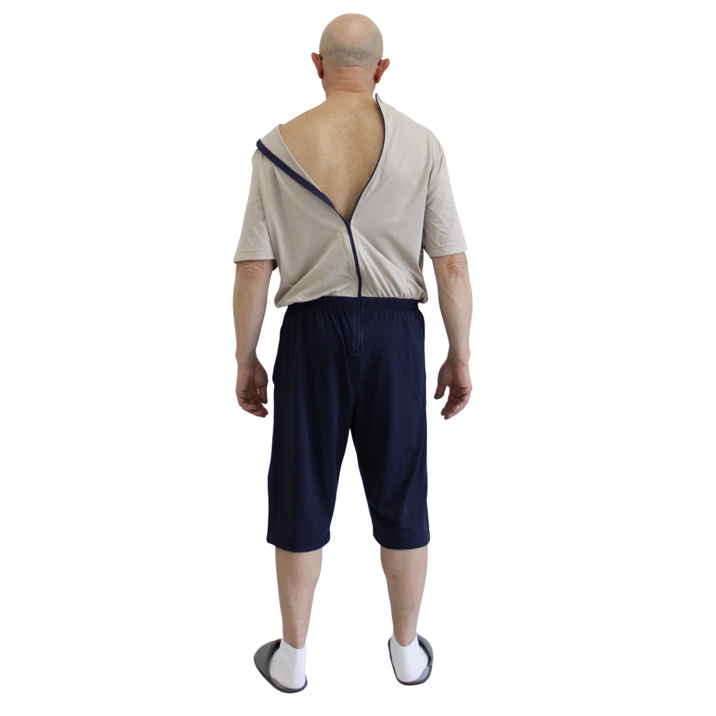 E’ una sorta di “tuta da ginnastica intera”, dotata di cerniera posteriore. Il pantalone è munito di elastico in vita ed è saldamente cucito alla parte superiore, in modo che non vi sia possibilità di accedere al pannolone.