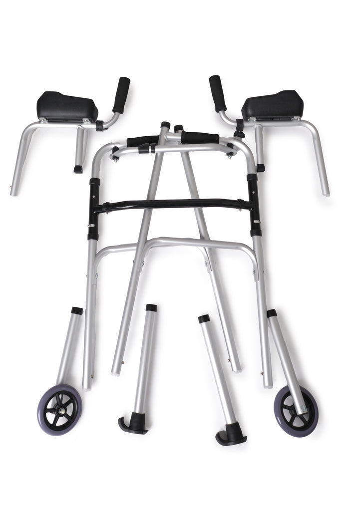 • Opvouwbare rollator van aluminium, zeer goed bestand tegen slecht weer en bruikbaar op elk terrein. Uitgerust met 2 voorwielen en onderarmondersteuning. In hoogte verstelbaar op 8 niveaus. Ook verstelbare onderarmlengte. Maximale belasting 100 KG.