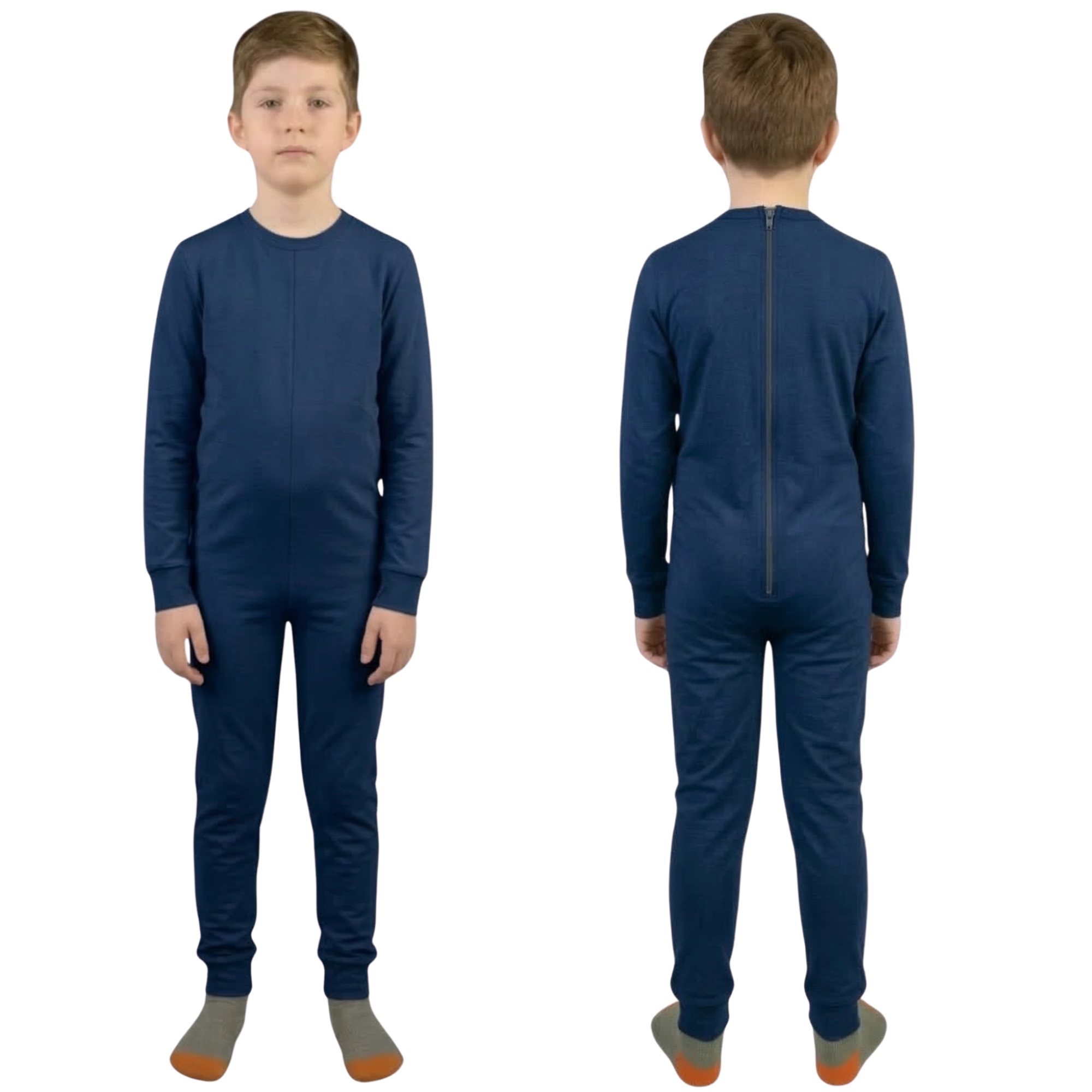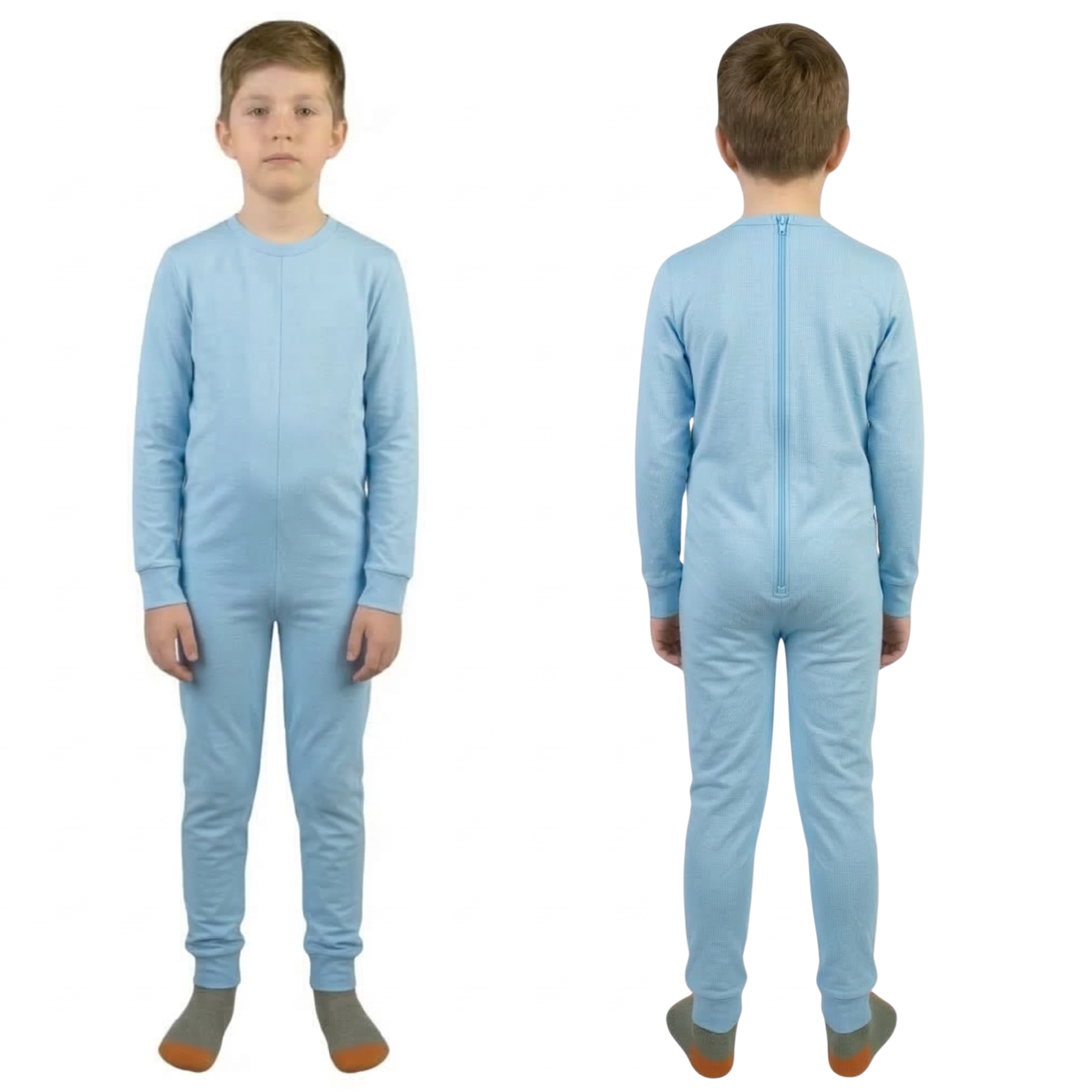 Tweekleurige gezondheidszorgpyjama uit één stuk met ritssluiting op de rug voor ouderen met Alzheimer, dementie of incontinentie - 9023 ML PL