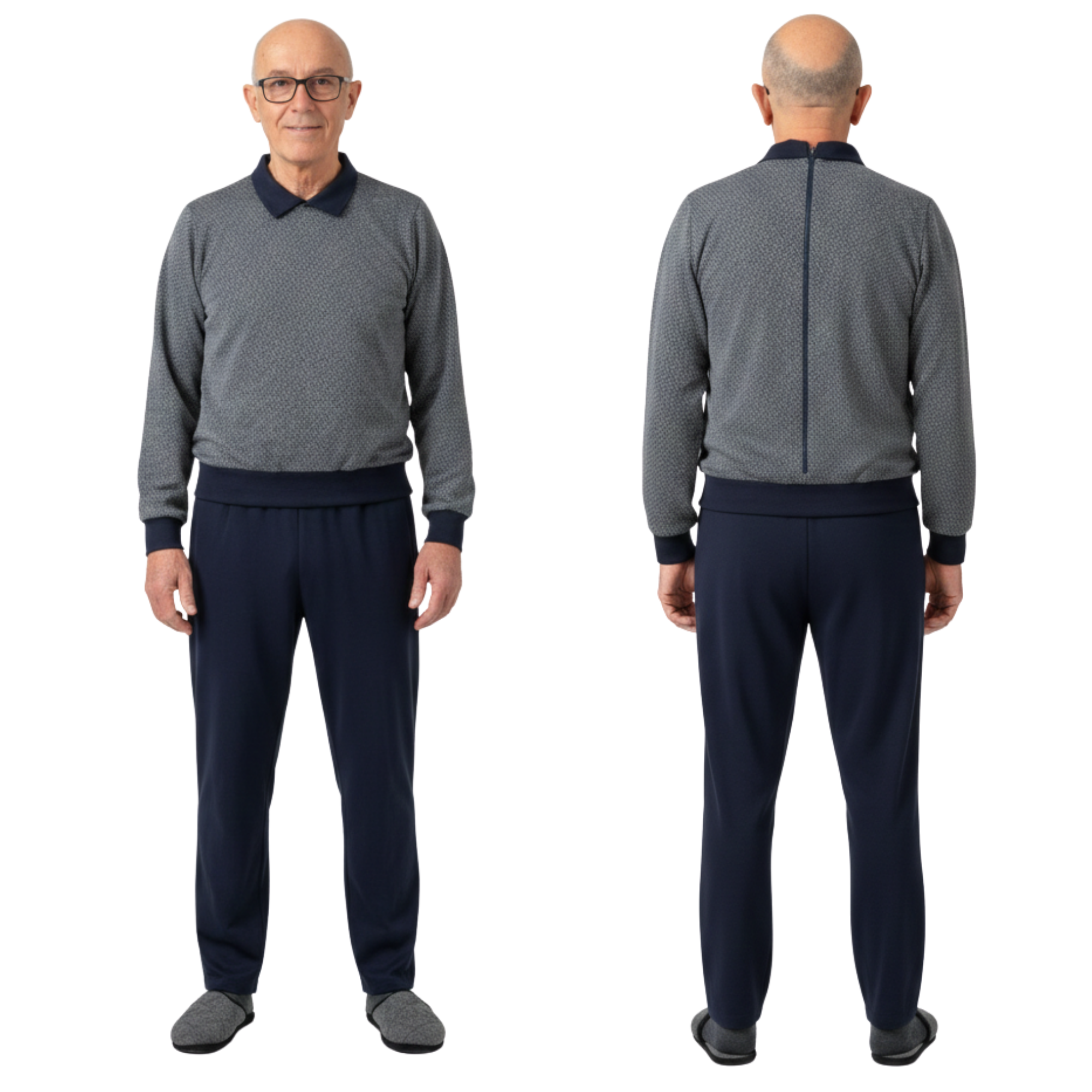 A differenza dei comuni pigiami sanitari, questo capo è progettato specificamente come abbigliamento esterno. Grazie al design curato e ai tessuti di alta qualità, si presenta come un normale completo sportivo o casual, permettendo al paziente di uscire di casa o frequentare ambienti comuni mantenendo il massimo della dignità e del decoro, senza rinunciare alla sicurezza necessaria.
