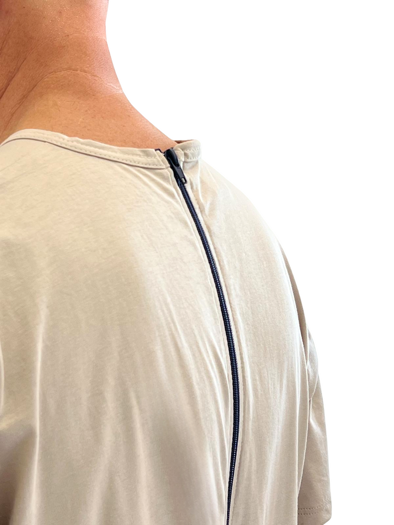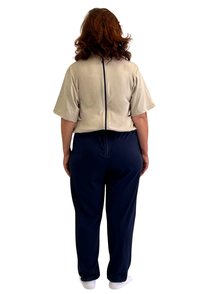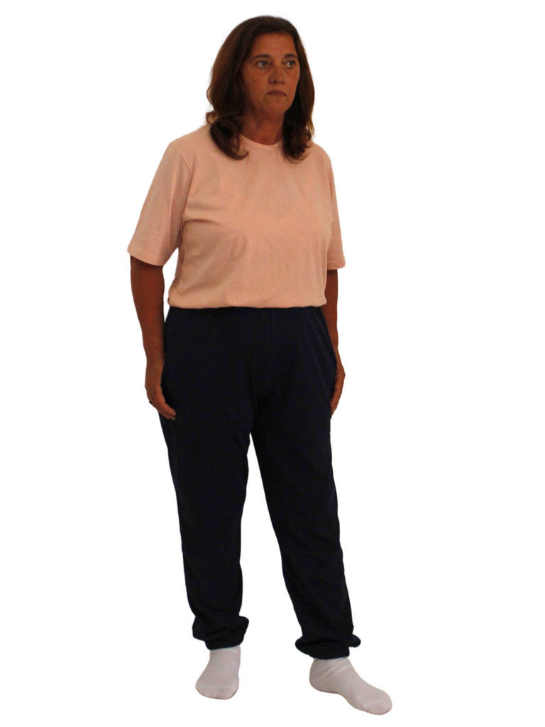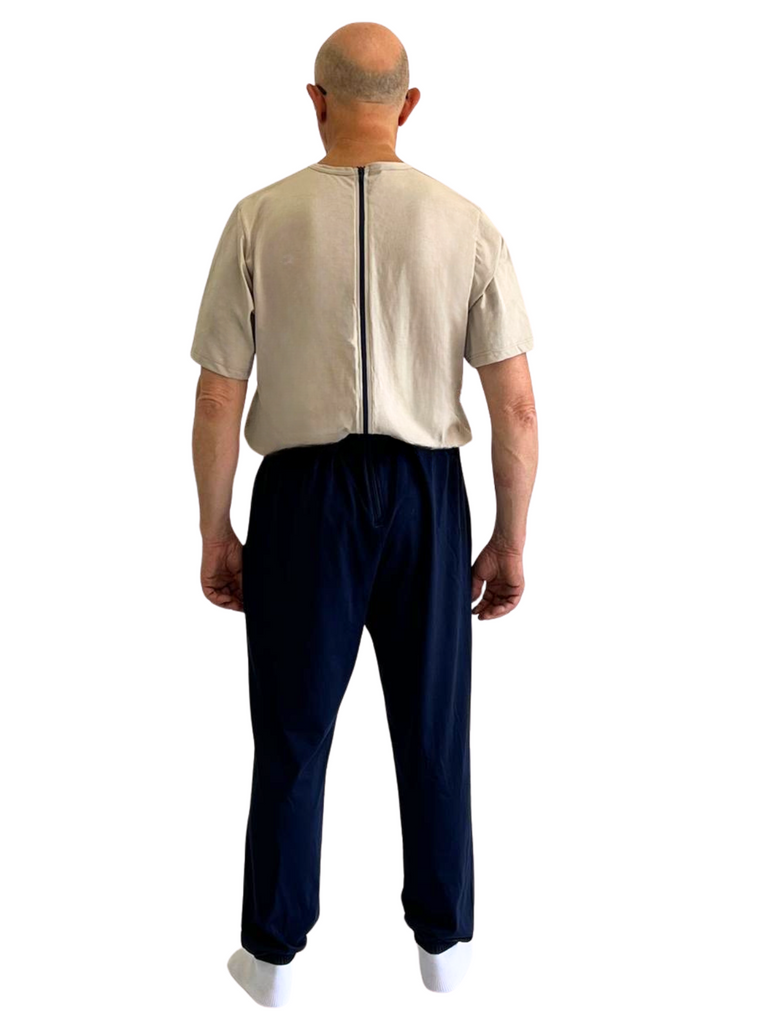 E’ una sorta di “tuta da ginnastica intera”, dotata di cerniera posteriore. Il pantalone è munito di elastico in vita ed è saldamente cucito alla parte superiore, in modo che non vi sia possibilità di accedere al pannolone.